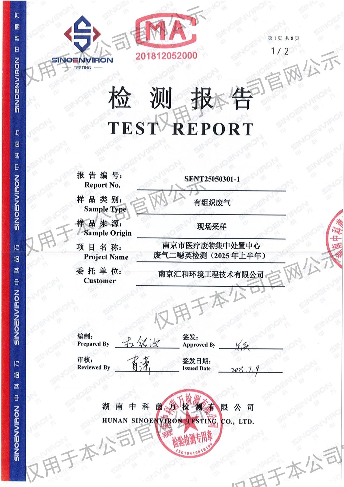 2025年上半年二噁英检测报告