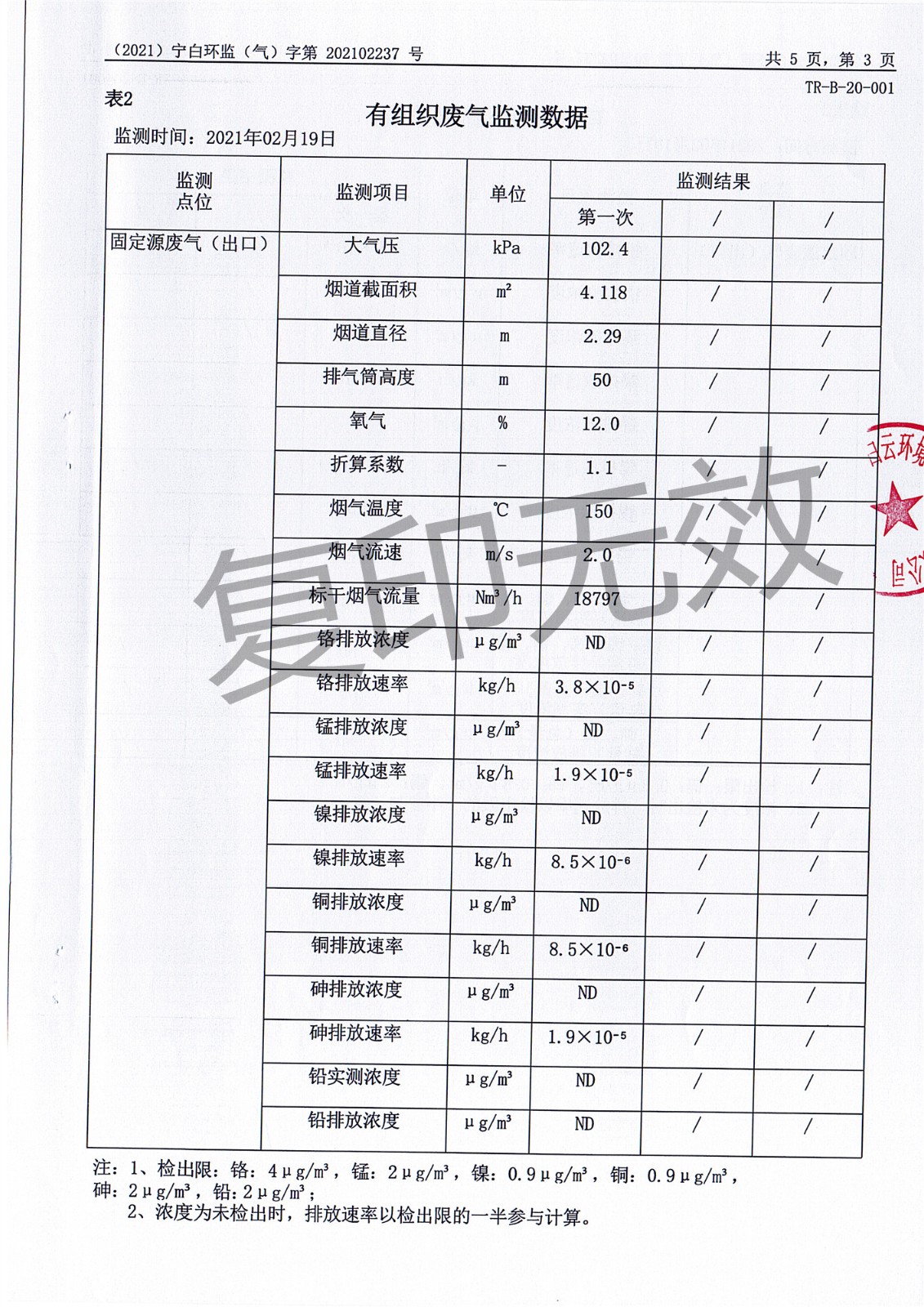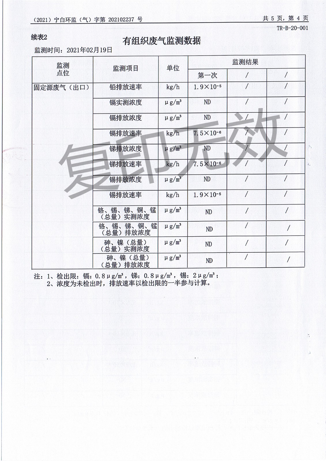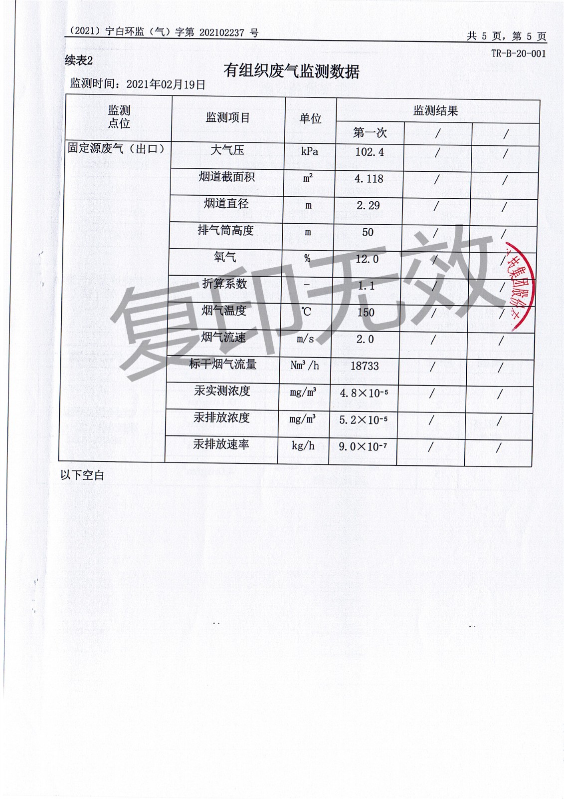 2021年2月有组织废气监测报告