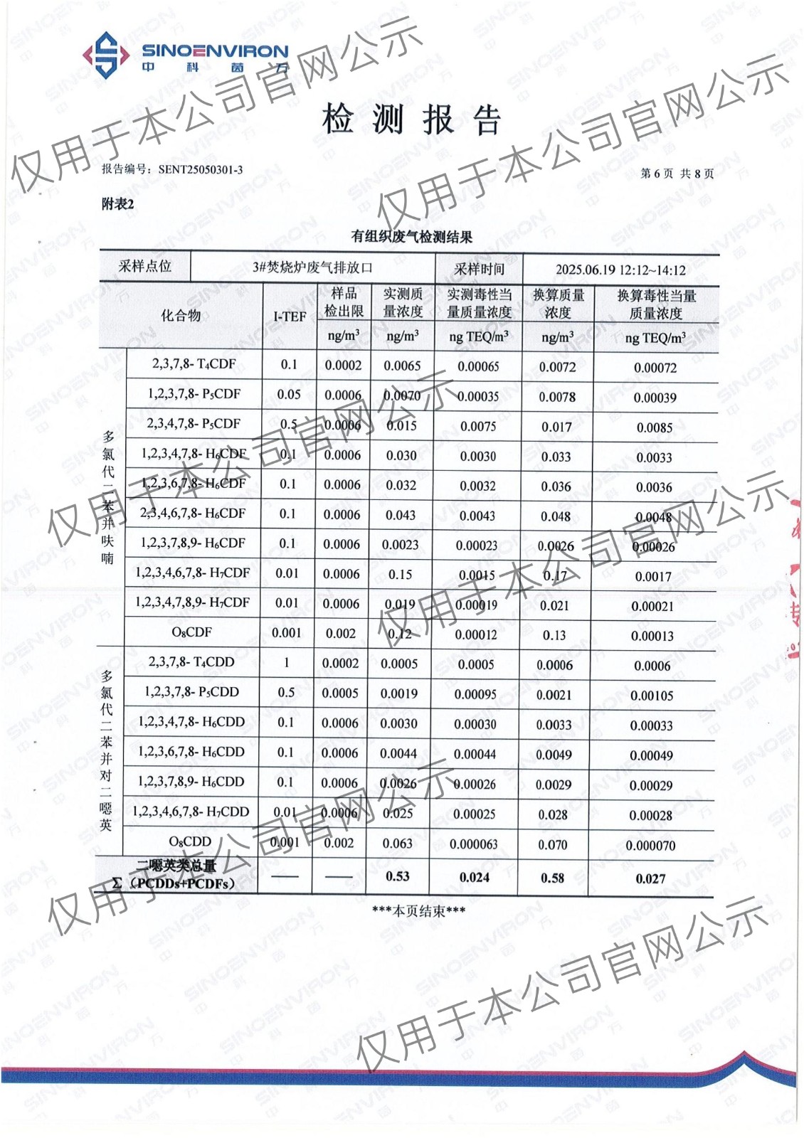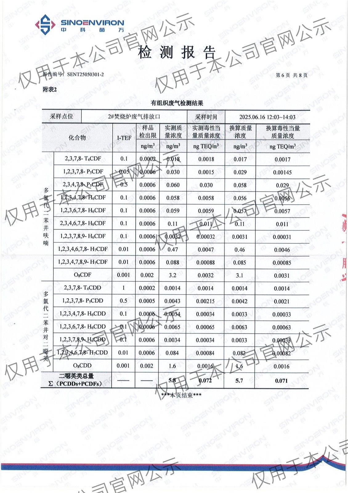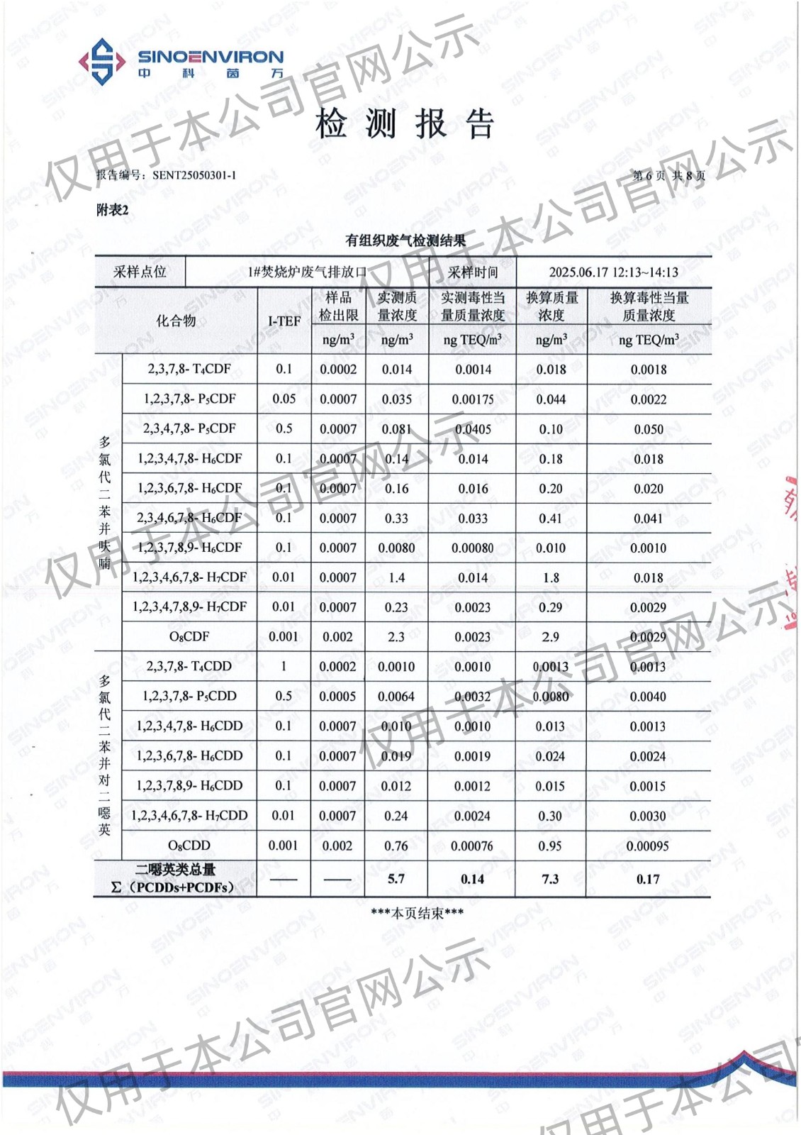 2025年上半年二噁英检测报告