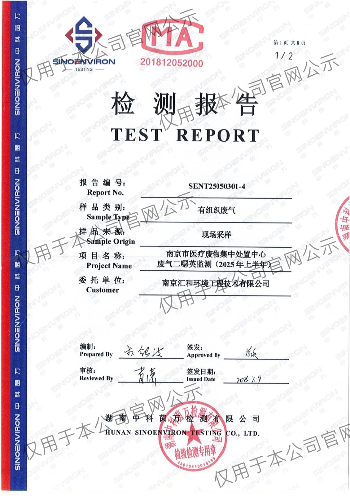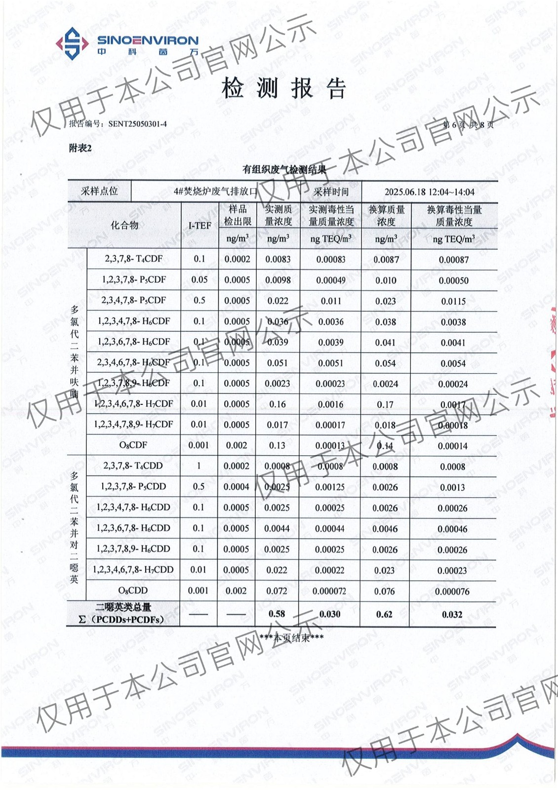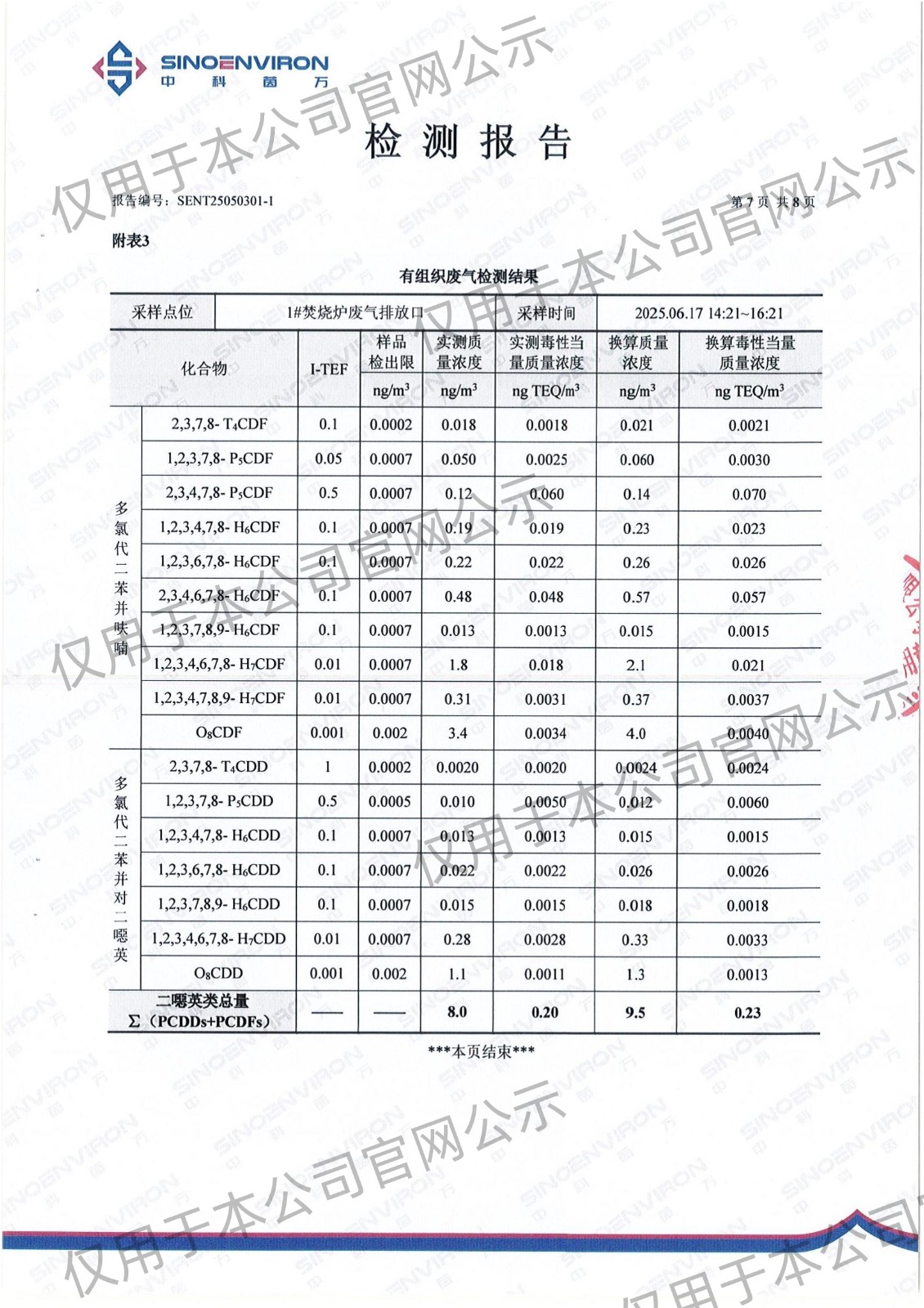2025年上半年二噁英检测报告