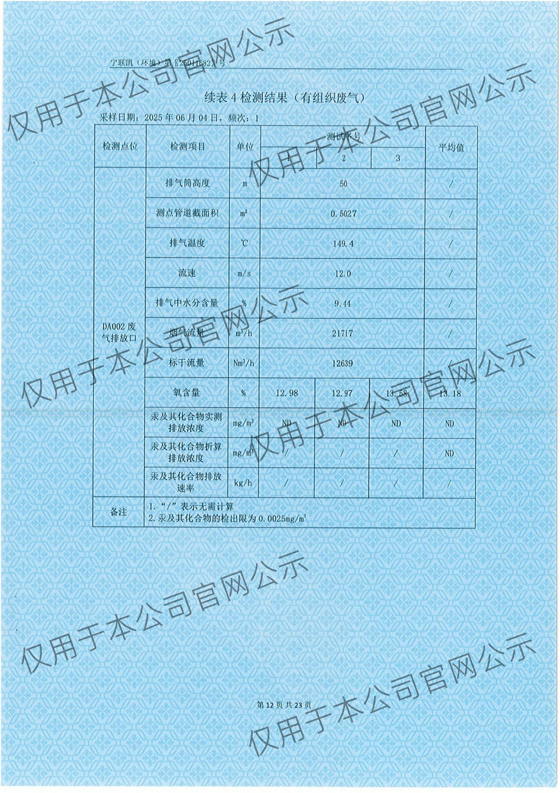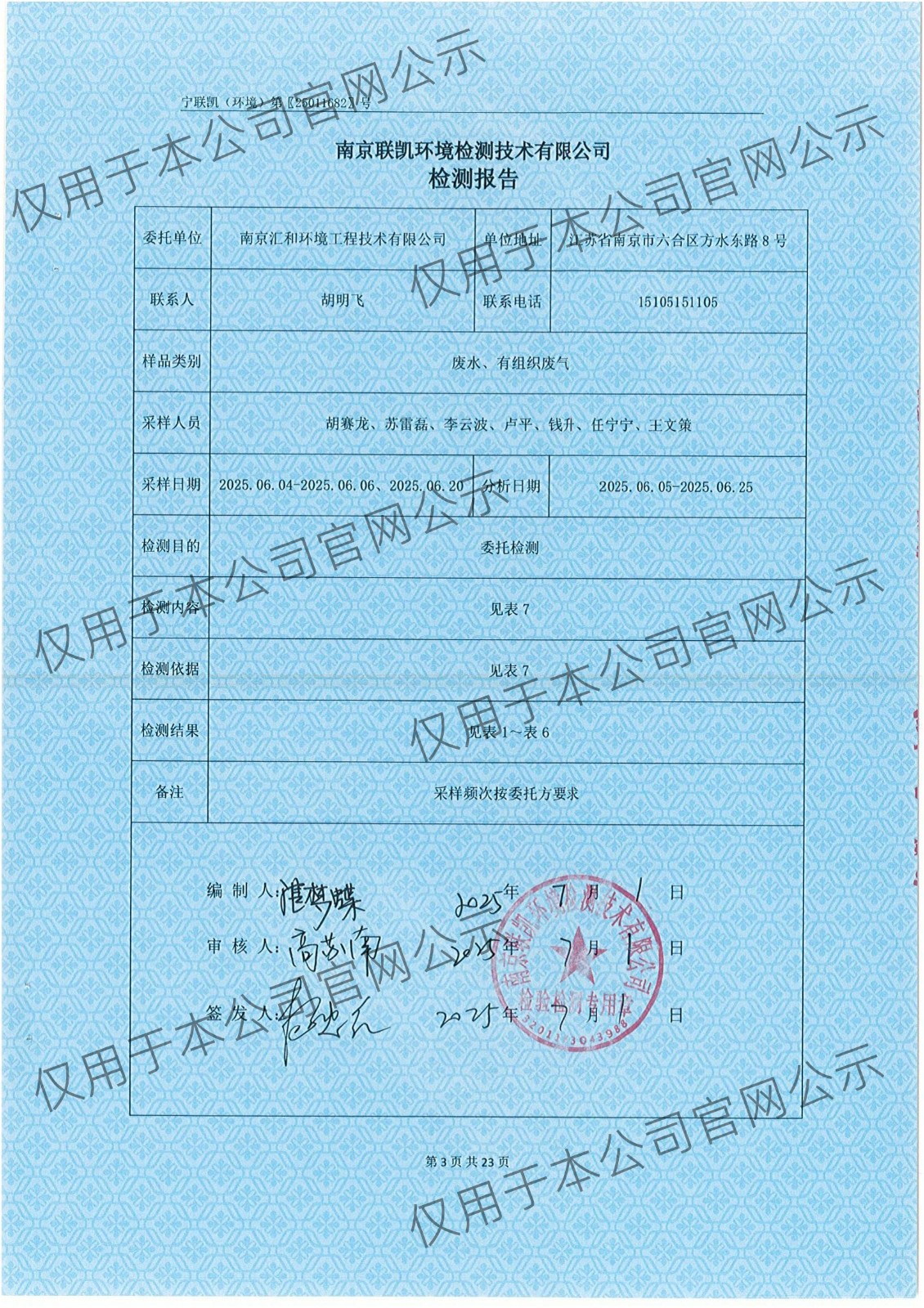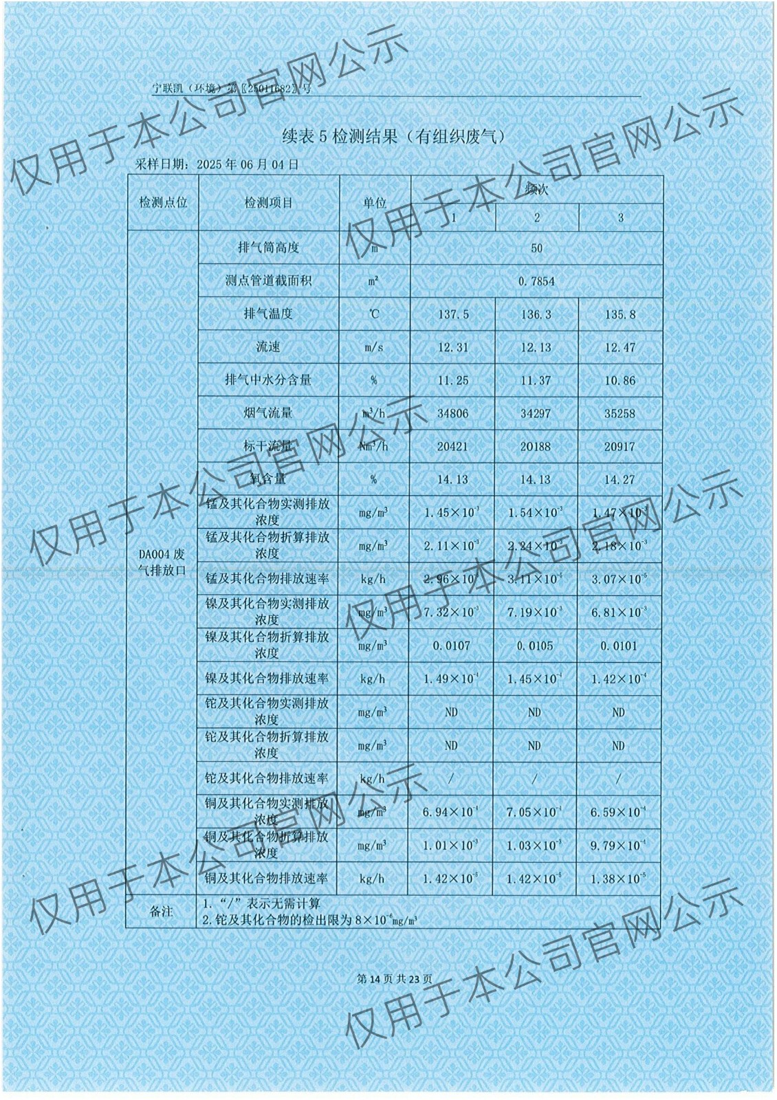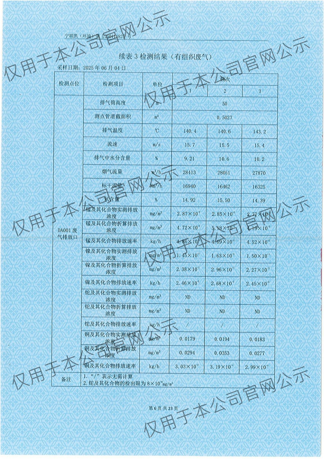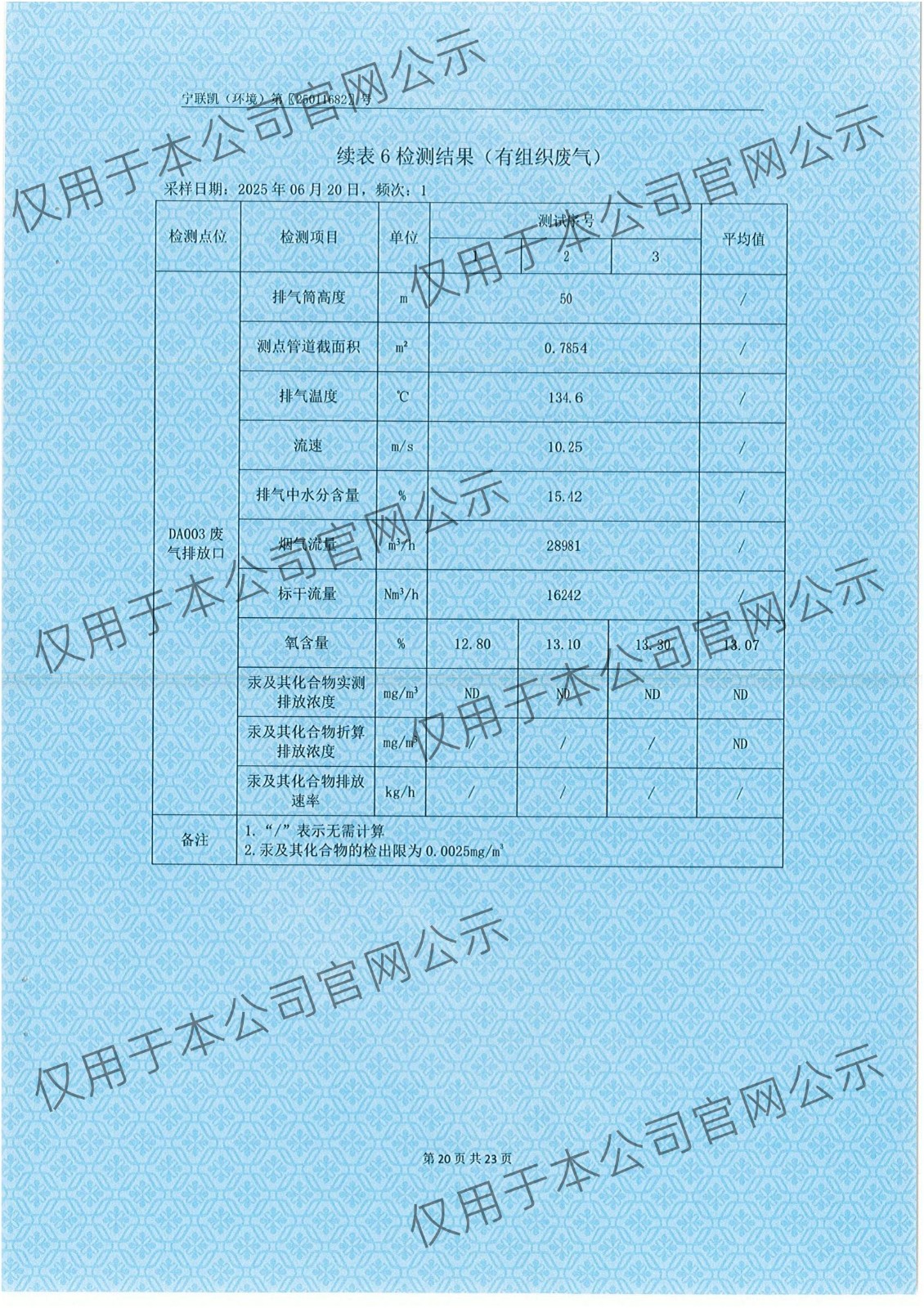 2025年6月份有组织废气检测报告