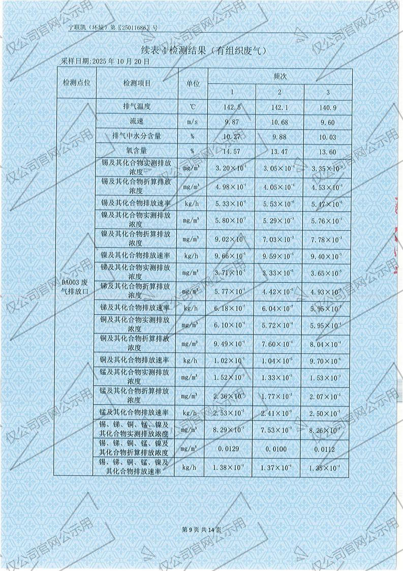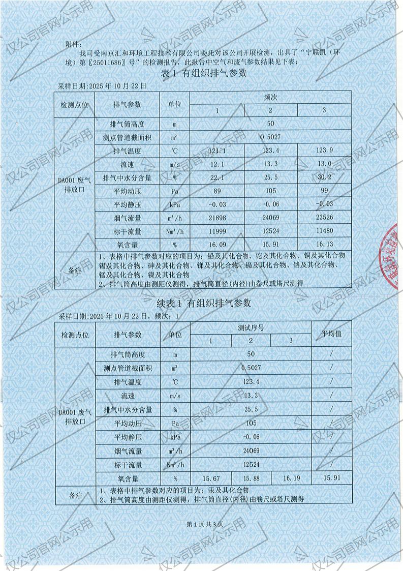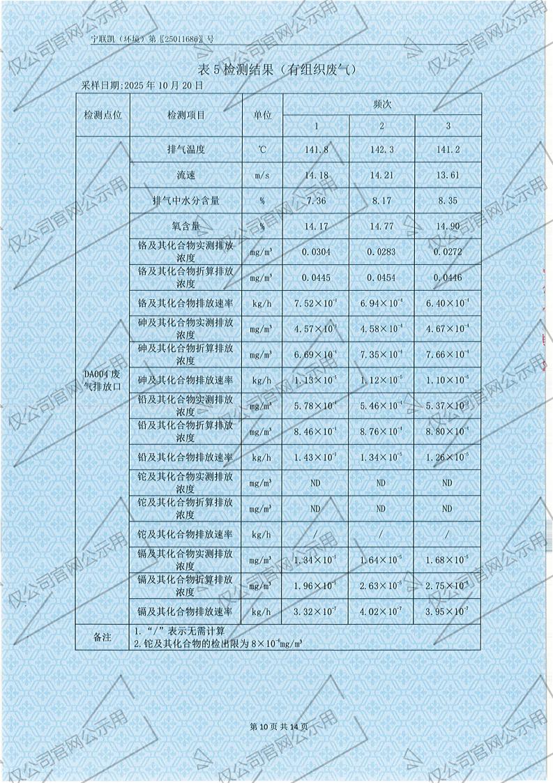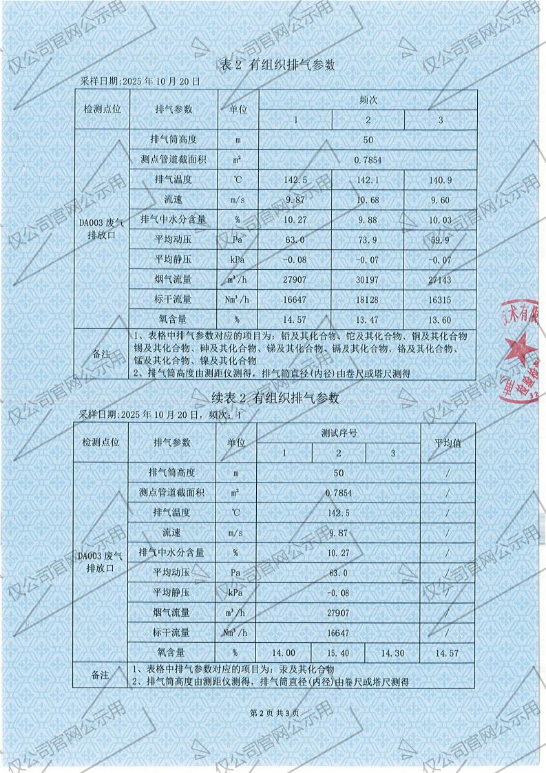 2025年10月份有组织废气检测报告